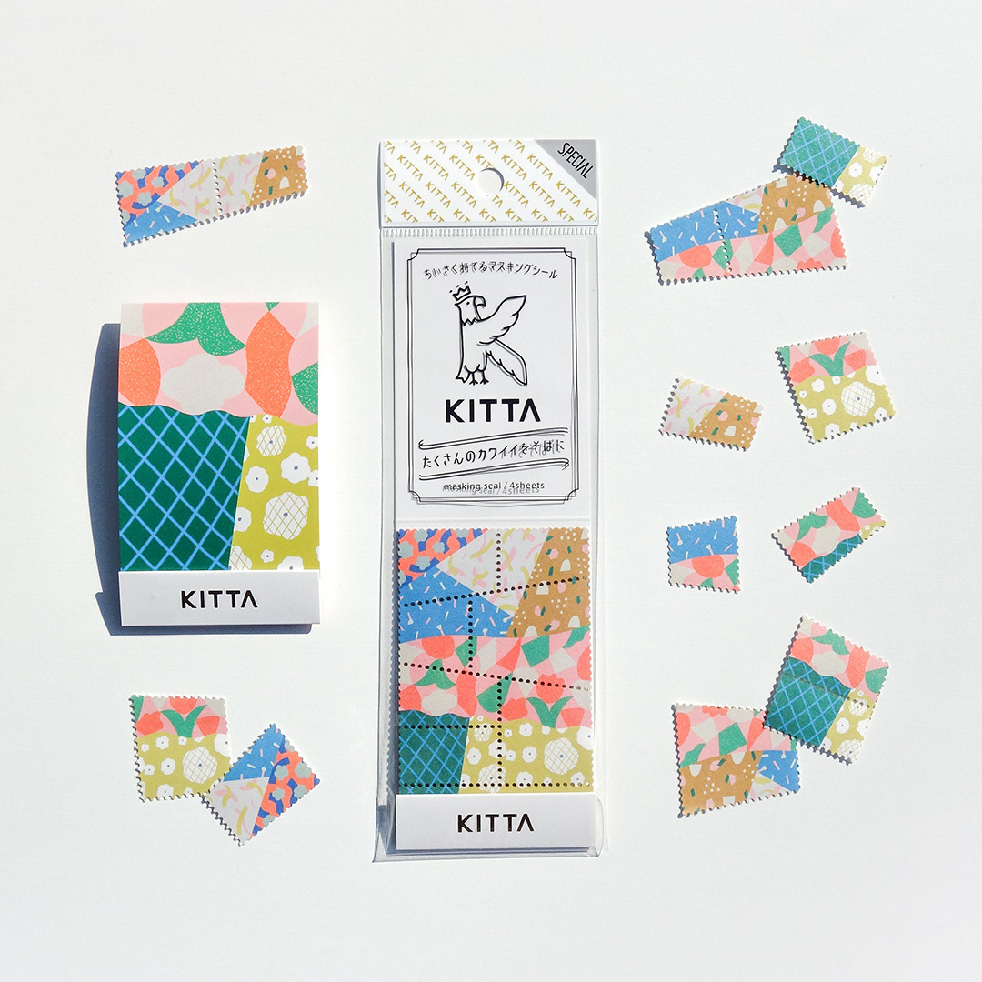 “日々を楽しむ”をテーマとした文房具ブランド『HITOTOKI』から発売する、ちいさく持てるマスキングテープ『KITTA』の新デザイン「パッチワーク」をお手伝いしました。